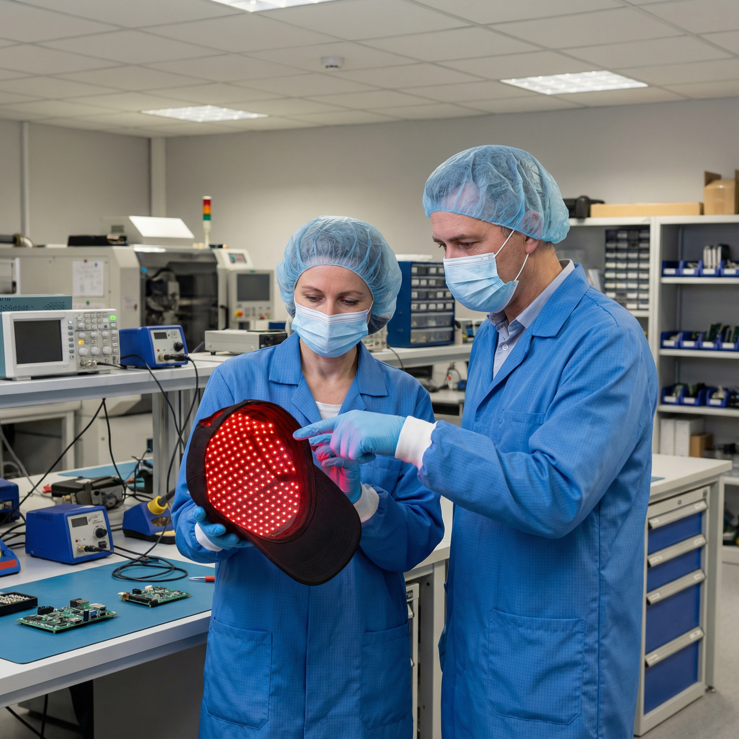 Nous nous sommes entourés de chercheurs, ingénieurs biomédicaux et spécialistes du cuir chevelu afin de concevoir un dispositif à la fois performant, sûr et agréable à utiliser. Ensemble, nous avons travaillé sur le format le plus ergonomique et compatible avec la vie de tous les jours, permettant une thérapie efficace et discrète, intégrée naturellement dans la routine quotidienne.