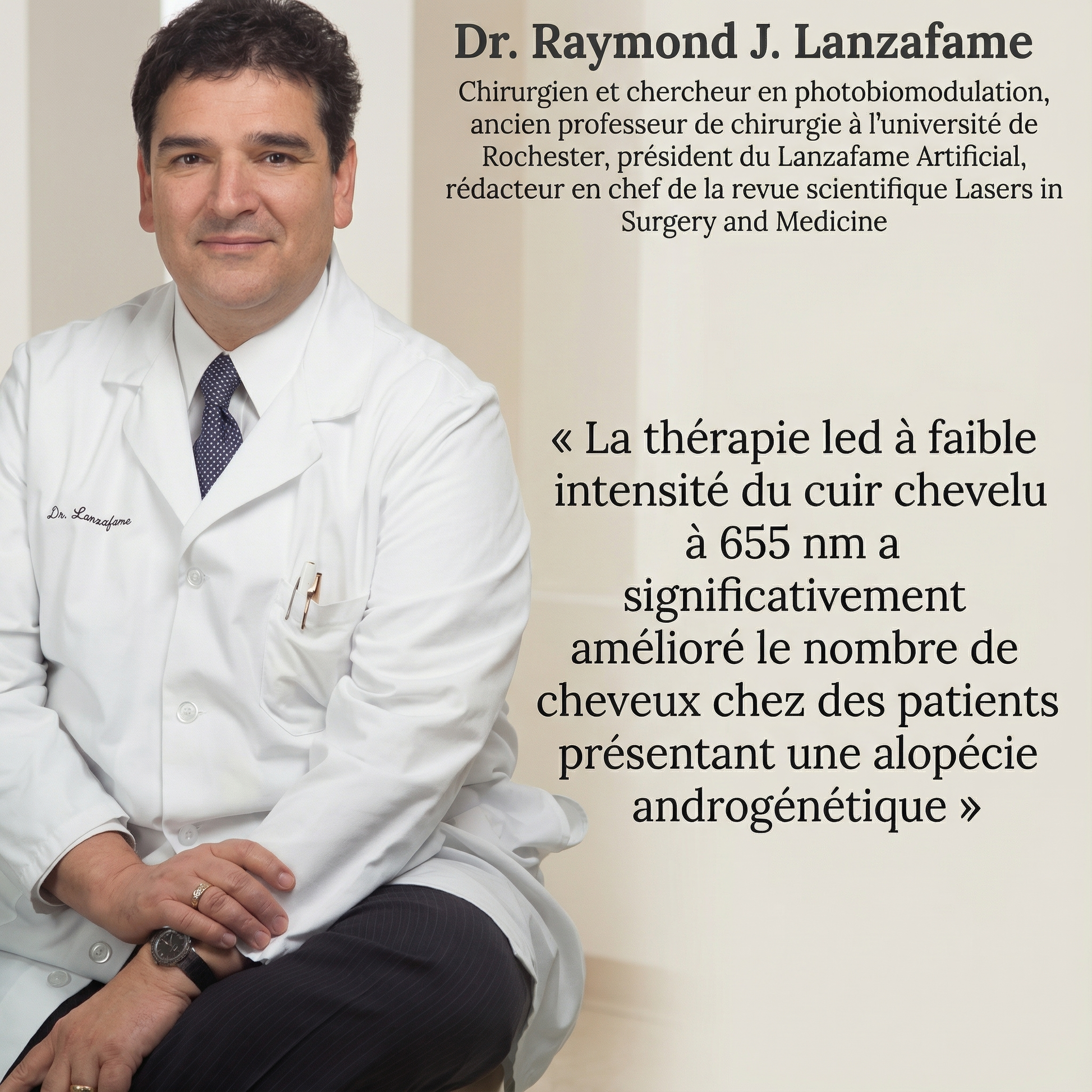 La photobiomodulation agit indirectement sur l’activité enzymatique responsable de la conversion de la testostérone en DHT. En stabilisant cette production, elle limite la miniaturisation des follicules et préserve leur cycle de croissance naturel, favorisant des cheveux plus forts et plus denses sur le long terme.