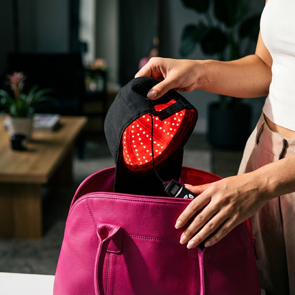 Portez la casquette pendant 15 minutes pour activer la repousse et renforcer vos cheveux.